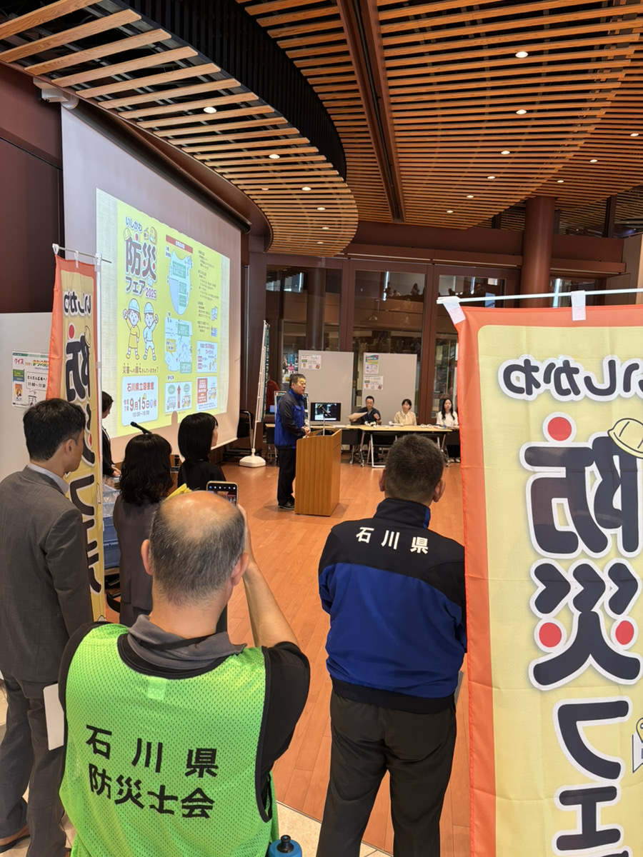 2025年9月15日(月)敬老の日に、「石川県防災フェア」が金沢市内にある「石川県立図書館」で開催されました。午前中馳知事も来場され大勢の方々がイベントに参加されていました。2024年能登半島地震から既に1年半余り経過しますが、市民の方々の防災意識は非常に高いと感じました。
