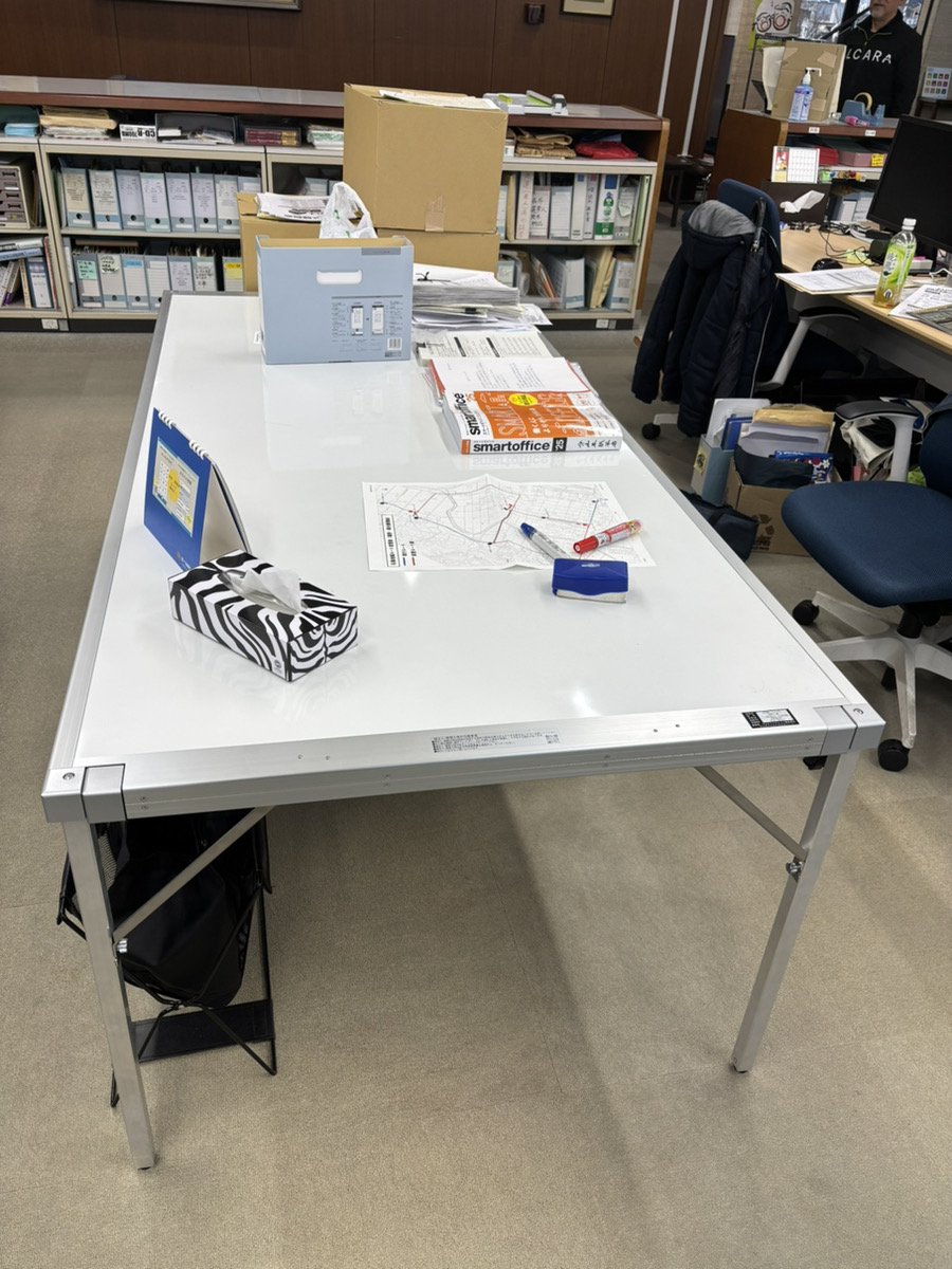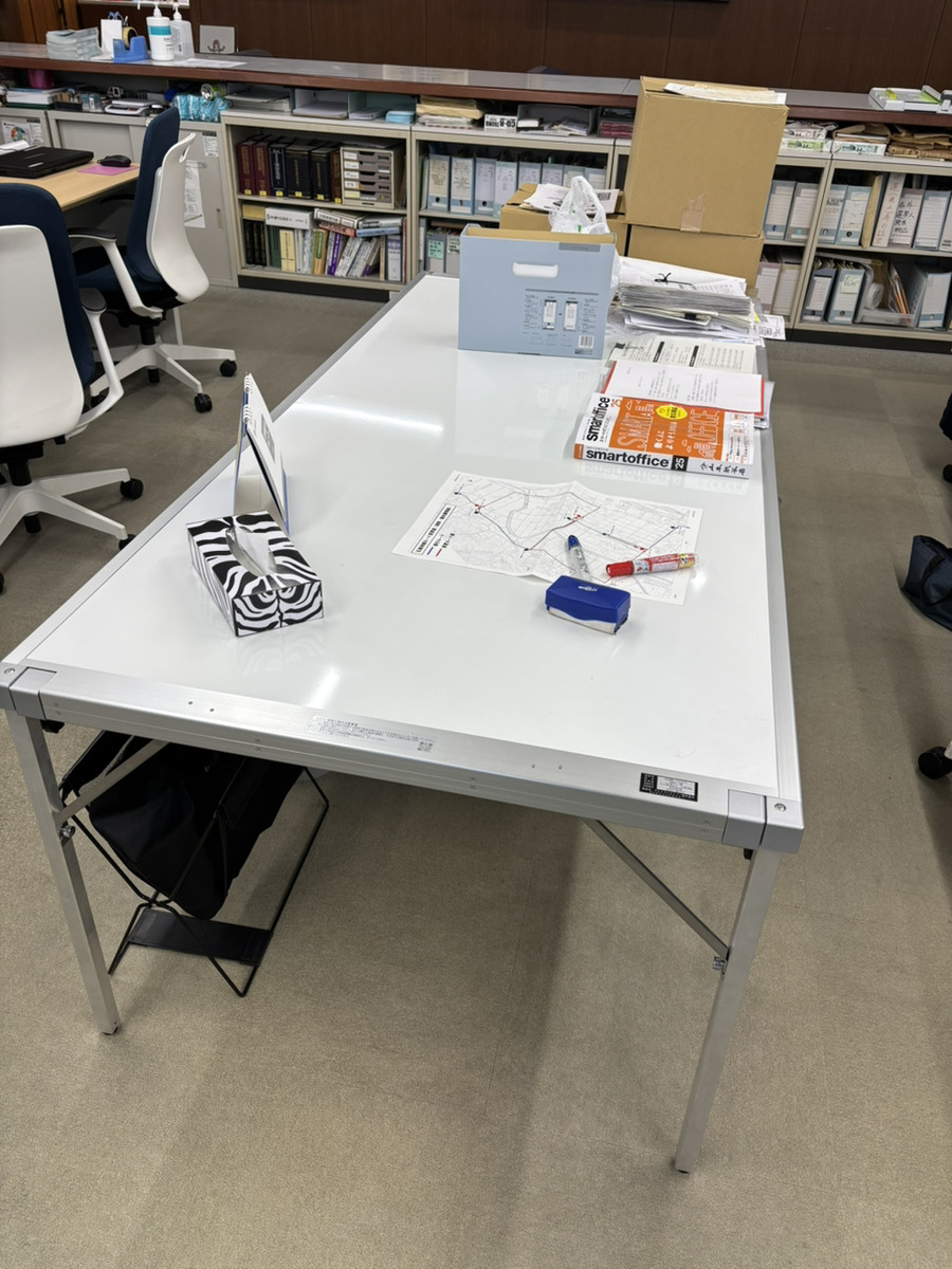 富山県 南砺市役所庁舎内の総務課危機管理フロアーで、打合せ用テーブルとして活用頂いています!