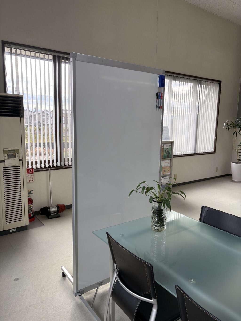 BCP認定を機に補助金制度を活用されてご購入頂きました!ALCARAアルカラを打合せテーブル横に設置されて、ホワイトボード機能として活用頂いています!