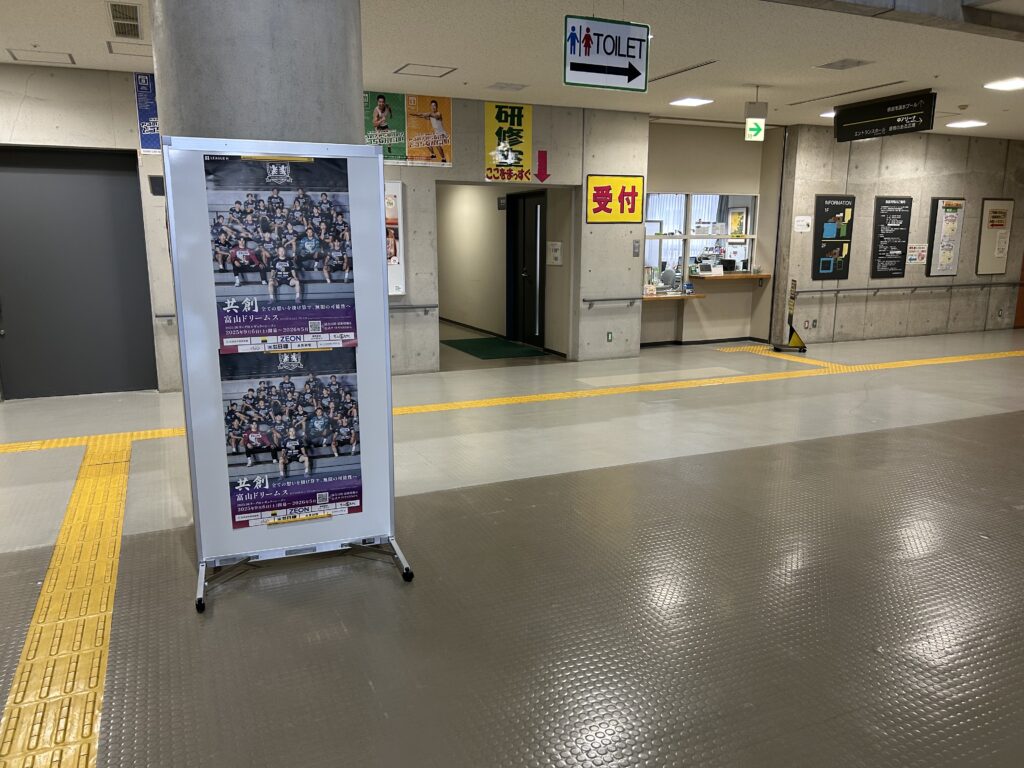 砺波市にある「富山県西部体育センター」のロビーで、平時は案内板として利用頂いています!